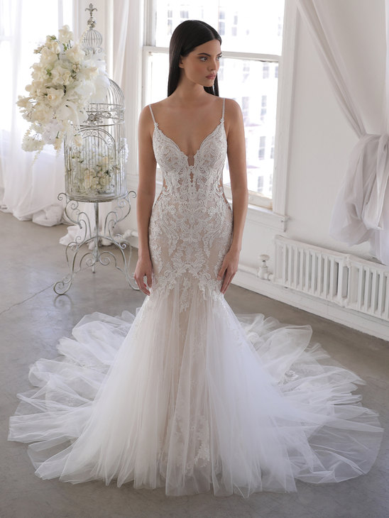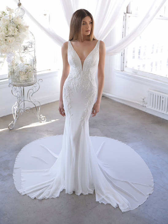Each wedding dress produced by Enzoani across several collections and hundreds of styles is custom designed and custom made. The dresses are hand-beaded, and most dresses require several hundred hours to create.